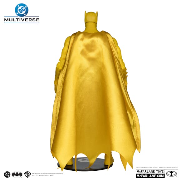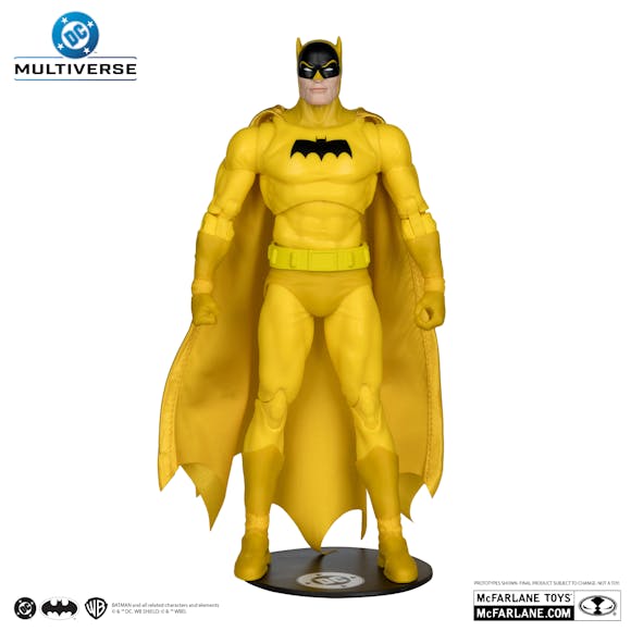 Batman (Yellow Suit) is a 7" figure with extra hands & a batarang all featued in a yellow finish.