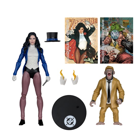 Blackhawk/Elongated Man/Zatanna w/Detective Chimp (DC Classics)/Cosmic Boy (Final Crisis)/Professor Pyg (Batman) McFarlane Collector Platinum Edition Bundle (5) 7" Figures