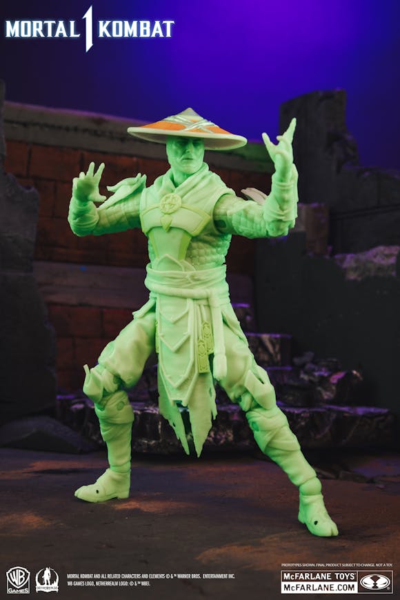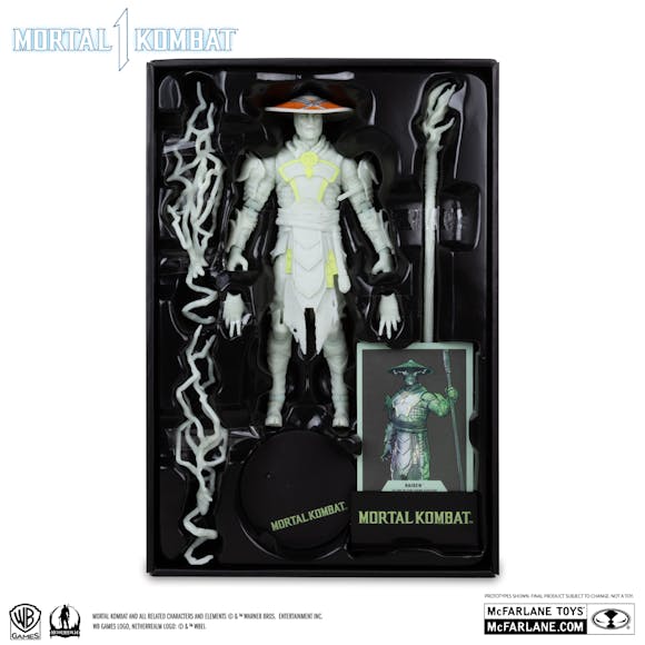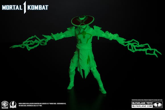 RAIDEN is featured in glow in the dark paint and includes 2 extra hands, Staff, 2 Lightning Bolts and a base.