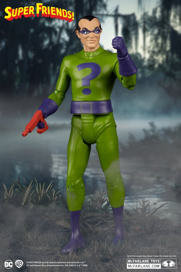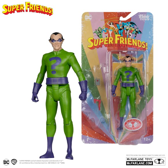 Super Friends Wave 1 Red Platinum Edition Riddler and Platinum Edition Evil Batman CHASE. Possessing a genius-level intellect, the Riddler creates elaborate, sometimes Rube Goldberg-esque traps, and is even willing to use innocent civilians as bait. Although not physically imposing, the Riddler’s brilliance, neurosis and lack of empathy make him an incredibly dangerous foe. He cares very little—if at all—about the lives of those he uses in his plots and instead only sees them as disposable pawns in his continuing intellectual battle against Batman. Each 6" scale figure is detailed in retro style and blister packaging based on DC SUPER FRIENDS.