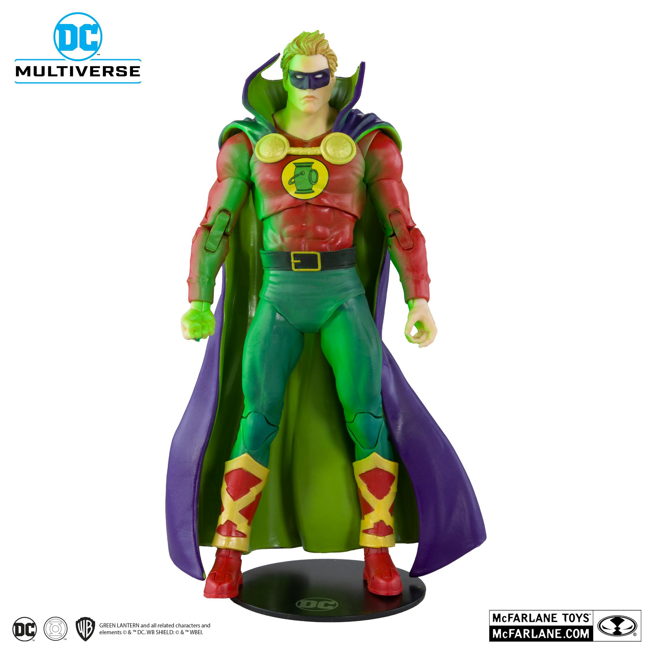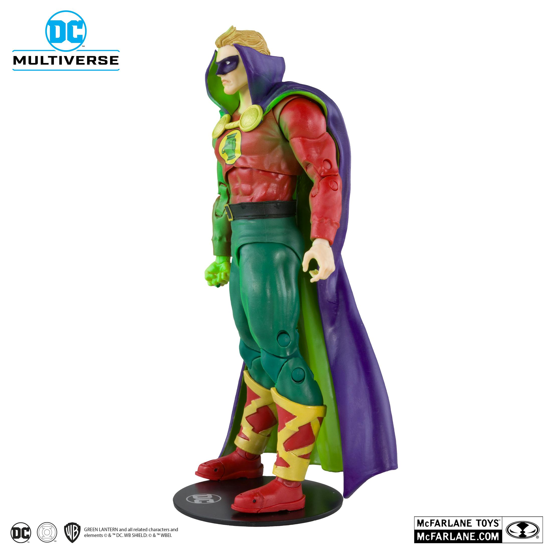 Green Lantern Alan Scott includes a lantern, attachable flame accessory, exclusive card stand and base. Includes collectible art card with character art on the front, and character biography on the back.