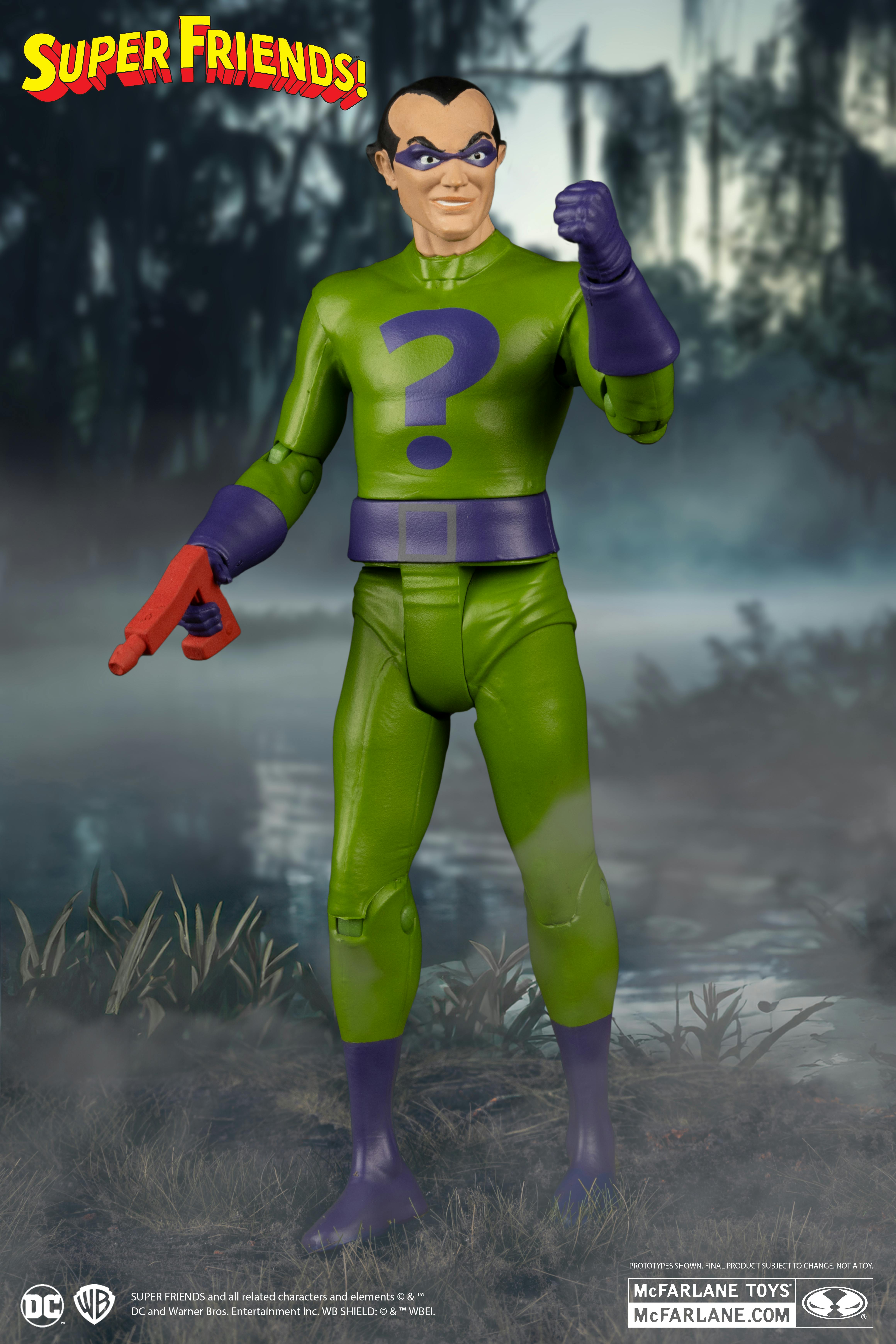 Super Friends Wave 1 Red Platinum Edition Riddler and Platinum Edition Evil Batman CHASE. Possessing a genius-level intellect, the Riddler creates elaborate, sometimes Rube Goldberg-esque traps, and is even willing to use innocent civilians as bait. Although not physically imposing, the Riddler’s brilliance, neurosis and lack of empathy make him an incredibly dangerous foe. He cares very little—if at all—about the lives of those he uses in his plots and instead only sees them as disposable pawns in his continuing intellectual battle against Batman. Each 6" scale figure is detailed in retro style and blister packaging based on DC SUPER FRIENDS.