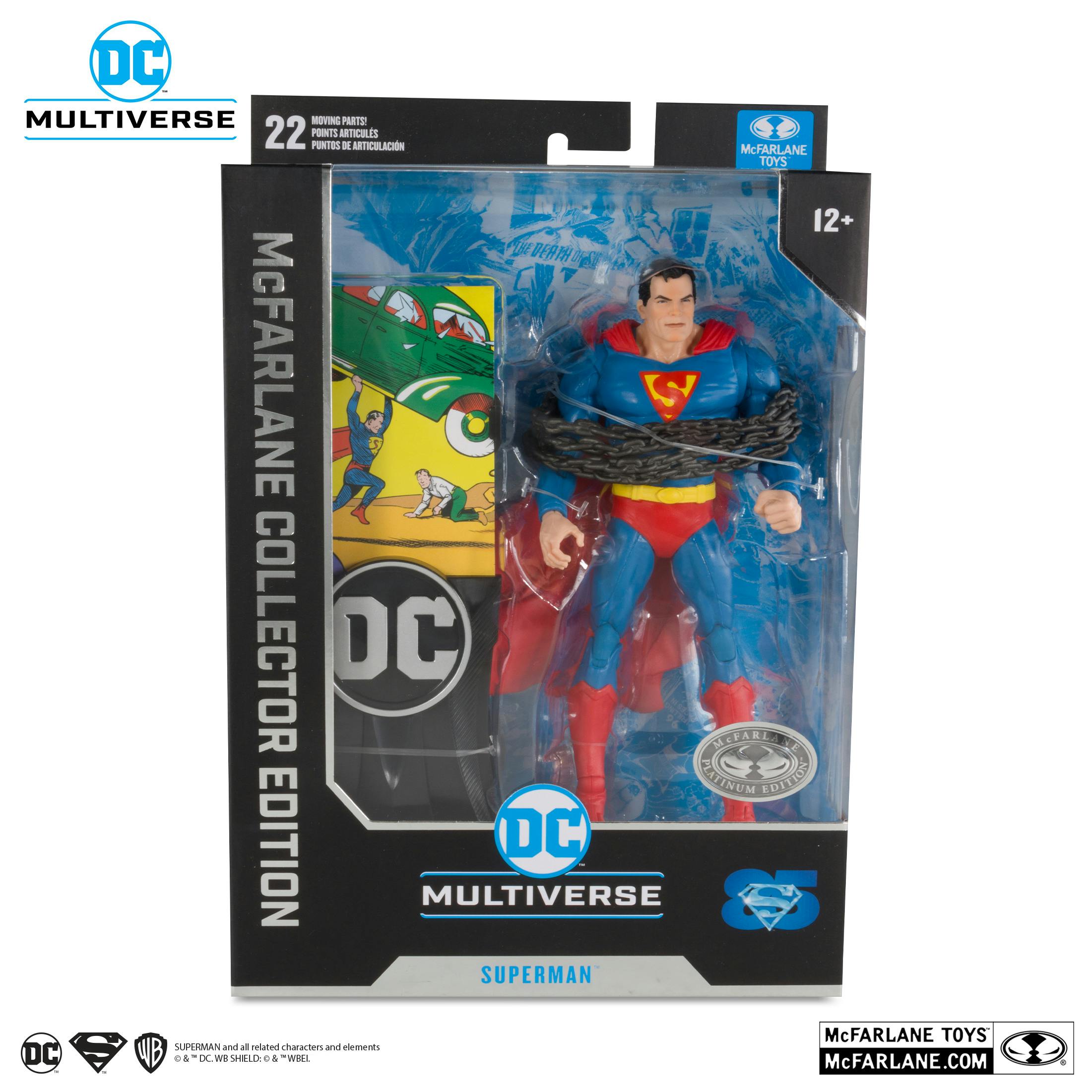 Superman is based on his look from Action Comics #1. The Platinum chase variant includes red boots features on the cover of this iconic comic book. Part of the McFarlane Collector Edition series.