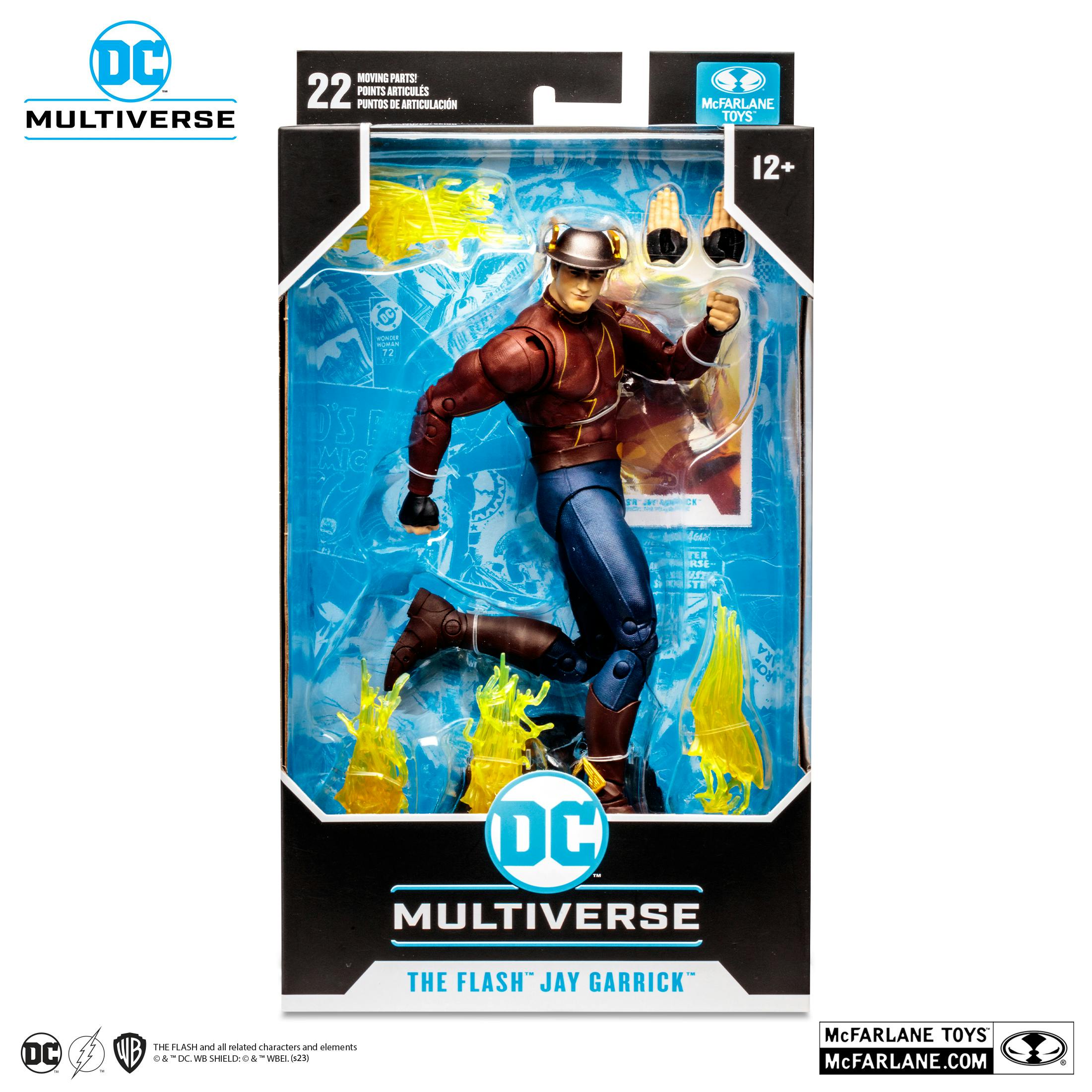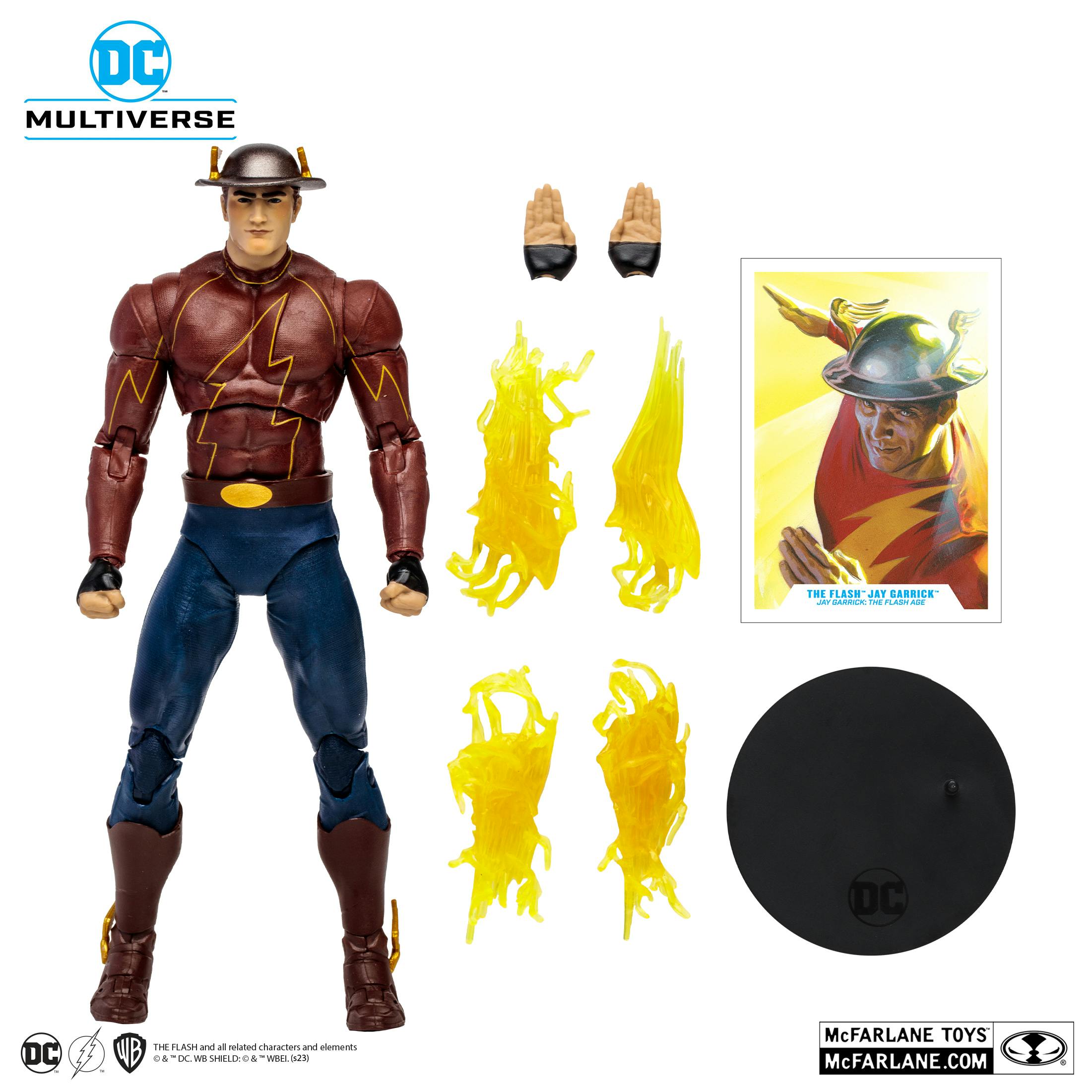 Incredibly detailed 7" scale figure based off the DC Multiverse. Designed with Ultra Articulation with up to 22 moving parts for full range of posing and play. Jay Garrick comes with 4 attachable lightning effects, swappable hands and base. Included collectible art card with figure photography on the front, and character biography on the back.